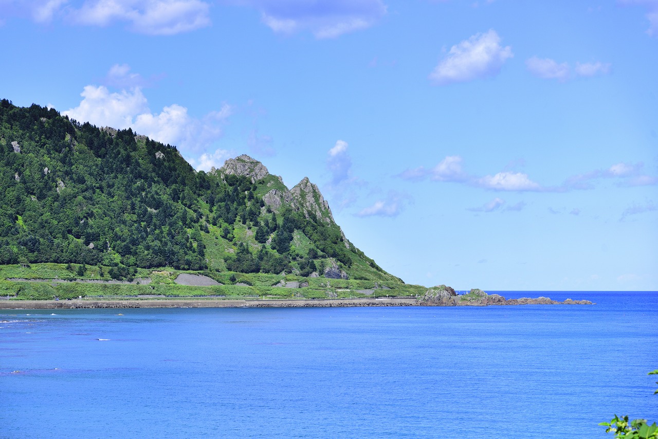 太平洋側は襟裳岬から始まり、2つのプレートの衝突によって形成された褶曲山脈である日高山脈、火山活動によって形成された大雪山系、準平原が再び隆起して小起伏山地となった北見山地、この「北海道の背骨」の北の端はこの北見神威岬で終わり、オホーツク海へと沈んでいく。