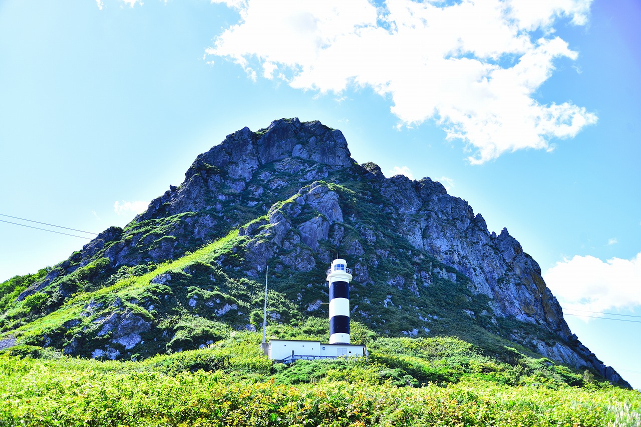 見上げると、断崖と灯台。
